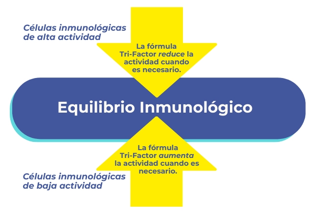 En estudios científicos, la fórmula 4Life Transfer Factor Plus Tri-Factor demostró que, cuando es necesario, ayuda a reducir la actividad de las células inmunológicas de alta actividad (Por ejemplo las células T colaboradoras); y a aumentar la actividad de las células inmunológicas de baja actividad. Es decir 4Life Transfer Factor Plus es un inmunomodulador natural.